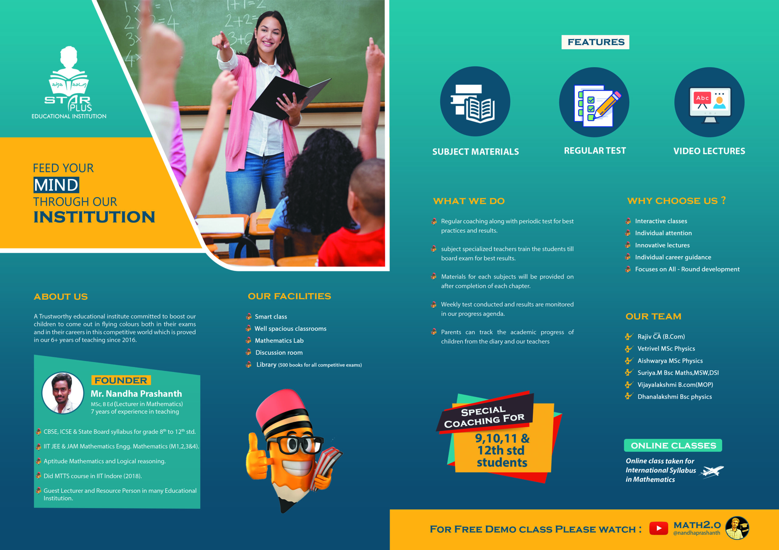 A TRUST WORTHY EDUCATIONAL INSTITUTE COMMITTED TO BOOST OUR CHILDREN TO COME OUT FLYING COLOURS BOTH IN THEIR EXAMS AND IN THEIR CAREERS IN THIS COMPETETIVE WOLRD WHICH IS PROVED IN OUR 6+ YEARS OF TEACHING SINCE 2016
